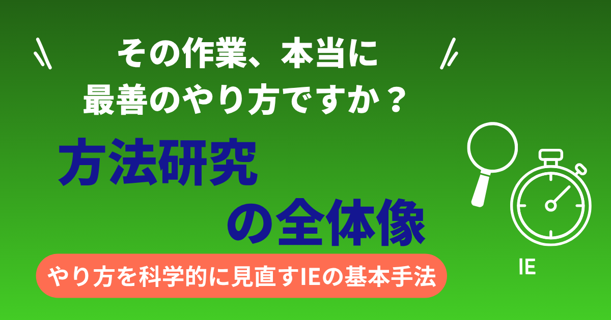 「忙しいのに成果が出ない」「設備を増やしても楽にならない」そんな現場の悩みは、“やり方”に原因があるかもしれません。 方法研究とは何か 方法研究とは、今行われている仕事の「方法(やり方)」そのものを対 ...