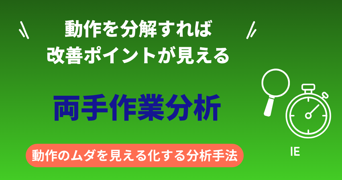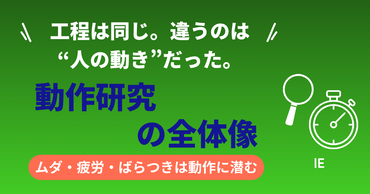 「改善をやれ」と言われたけれど、作業者の何を見ればいいのかわからない。 製造現場に配属されたばかりの方や、初めてIE・改善活動に関わる方なら、そんな悩みを感じたことがあるのではないでしょうか。 現場を ...