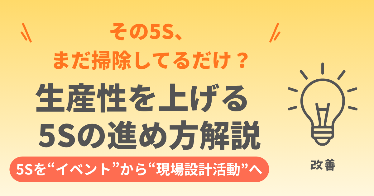 「5Sやってる?」と聞くと、こんな答えが返ってきます。 掃除の時間 整理整頓活動 監査前の片付け 多くの現場で、5Sは「キレイにする活動」と認識されています。 でも、本来の5Sは違います。 5Sは現場 ...