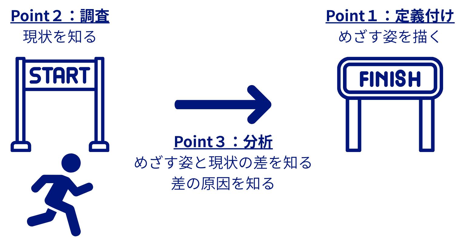めざす姿(=ゴール)があるからこそ、現状(=スタート)との「差」が分かり、問題が見えてきます。