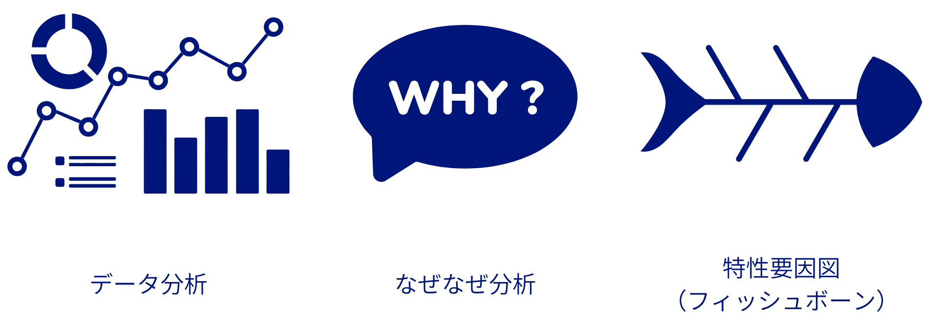 原因を特定する際は、「現場の声」や「現象」をよく観察し、データと突き合わせることがポイントです。