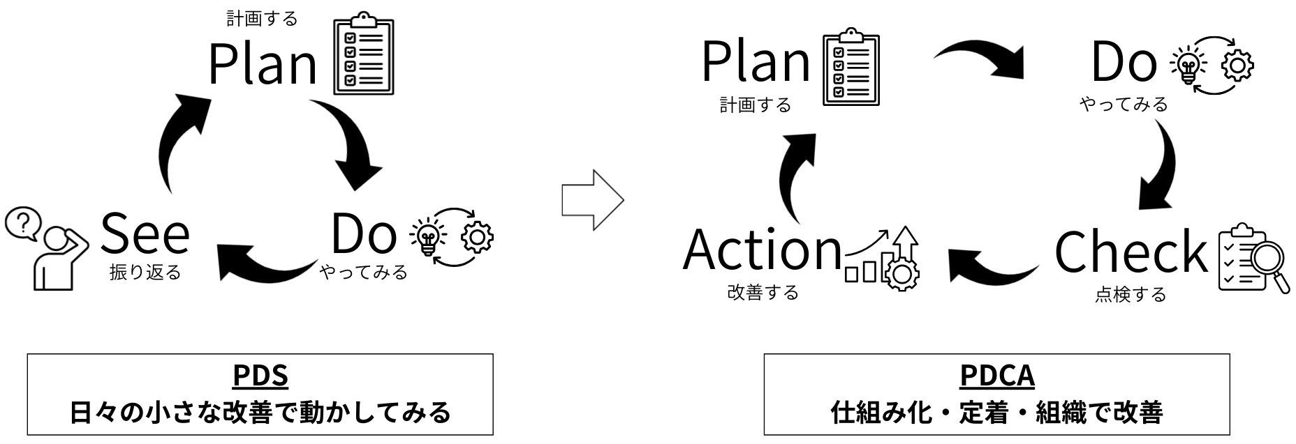 PDSは「試す → 気づく → もっと良くする」を繰り返して成長する方法です。
