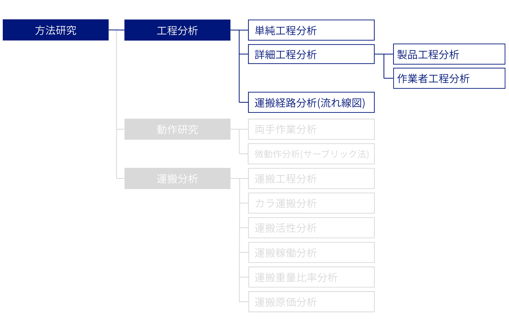 • 単純工程分析/詳細工程分析/運搬分析などの違いが曖昧